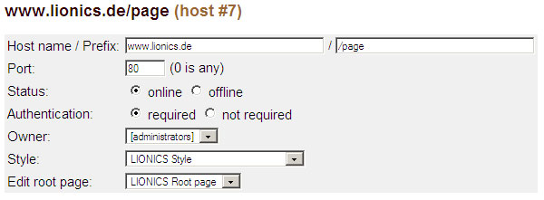 - Host Administration (Webauftritte, virtuelle Hosts)