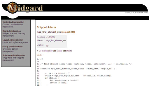 ... ist der hohe Anspruch des seit 1998 entwickelten Open Source Projekts Midgard Application Server. Hierbei handelt es sich um ein vollwertiges und ausgereiftes Online-Redaktionssystem, das die Komponenten der LAMP-Umgebung ideal integriert, erweitert und miteinander vernetzt. Der Fokus des Projekts richtet sich auf Online-Content-Management, d. h. vollständige Administration aller Komponenten des Internet-Auftritts im Web-Browser.